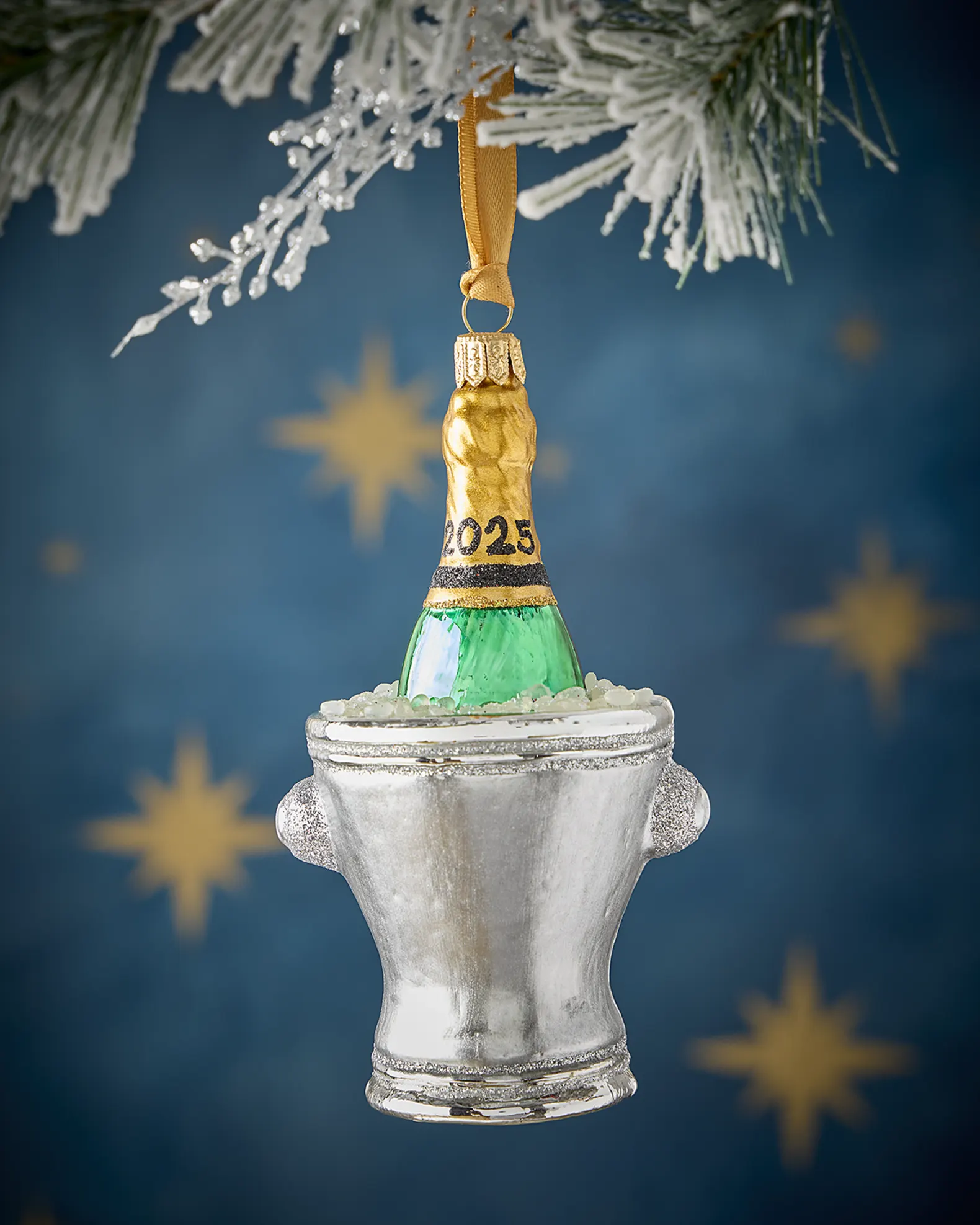 A sweet way to remember the year is with this 2025 Champagne bucket ornament. I’ll toast to that! There’s a similar version available here. This embellished Champagne bottle ornament is also fun and extra celebratory!